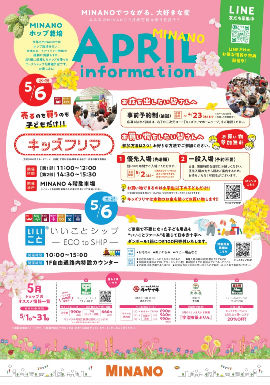 🌸【4~5月イベント&ショップ情報】キッズフリマ開催!お得なおすすめ情報もチェック♪ 🌸
